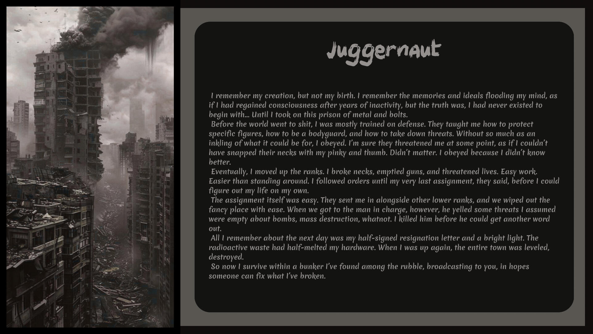 About I’m Juggernaut, I run a bunker‑style stream built for tense vibes and no‑nonsense gameplay. Dark lighting, tactical energy, and a community that moves like a unit. Expect focused runs, grilled commentary, and the occasional chaotic experiment — all delivered with grit and zero fluff. What I do